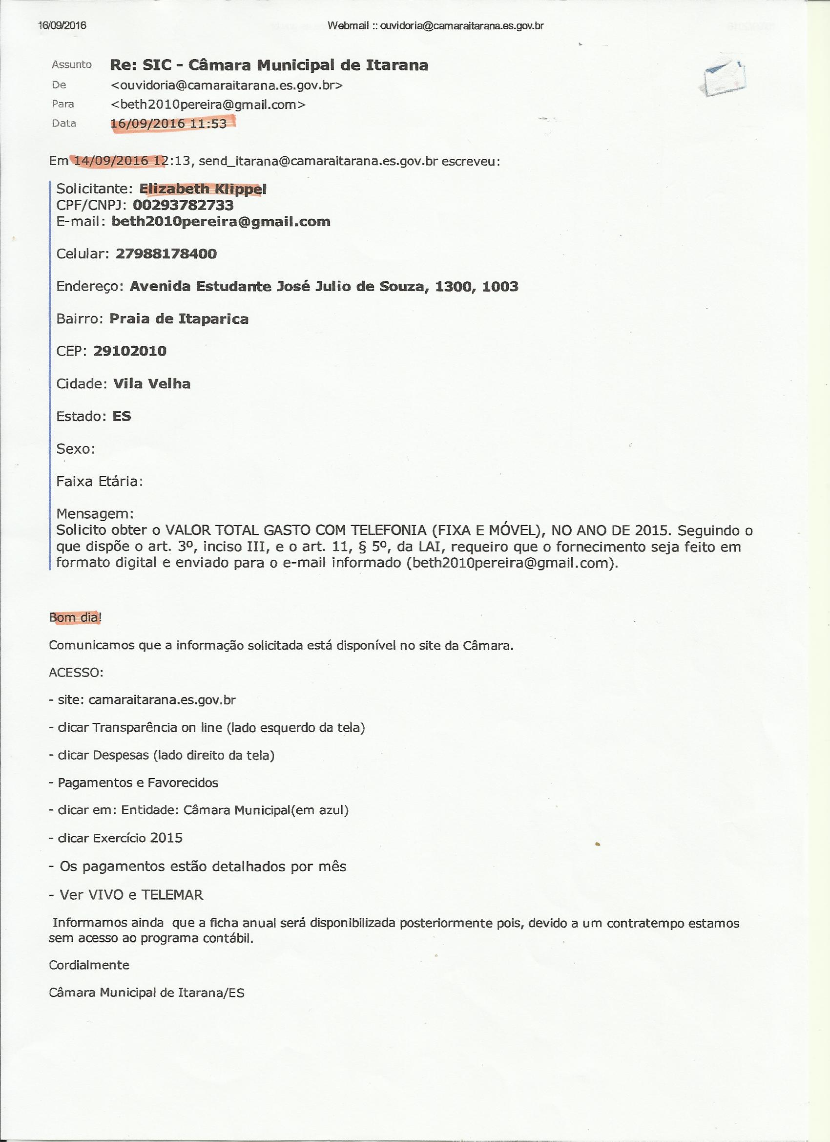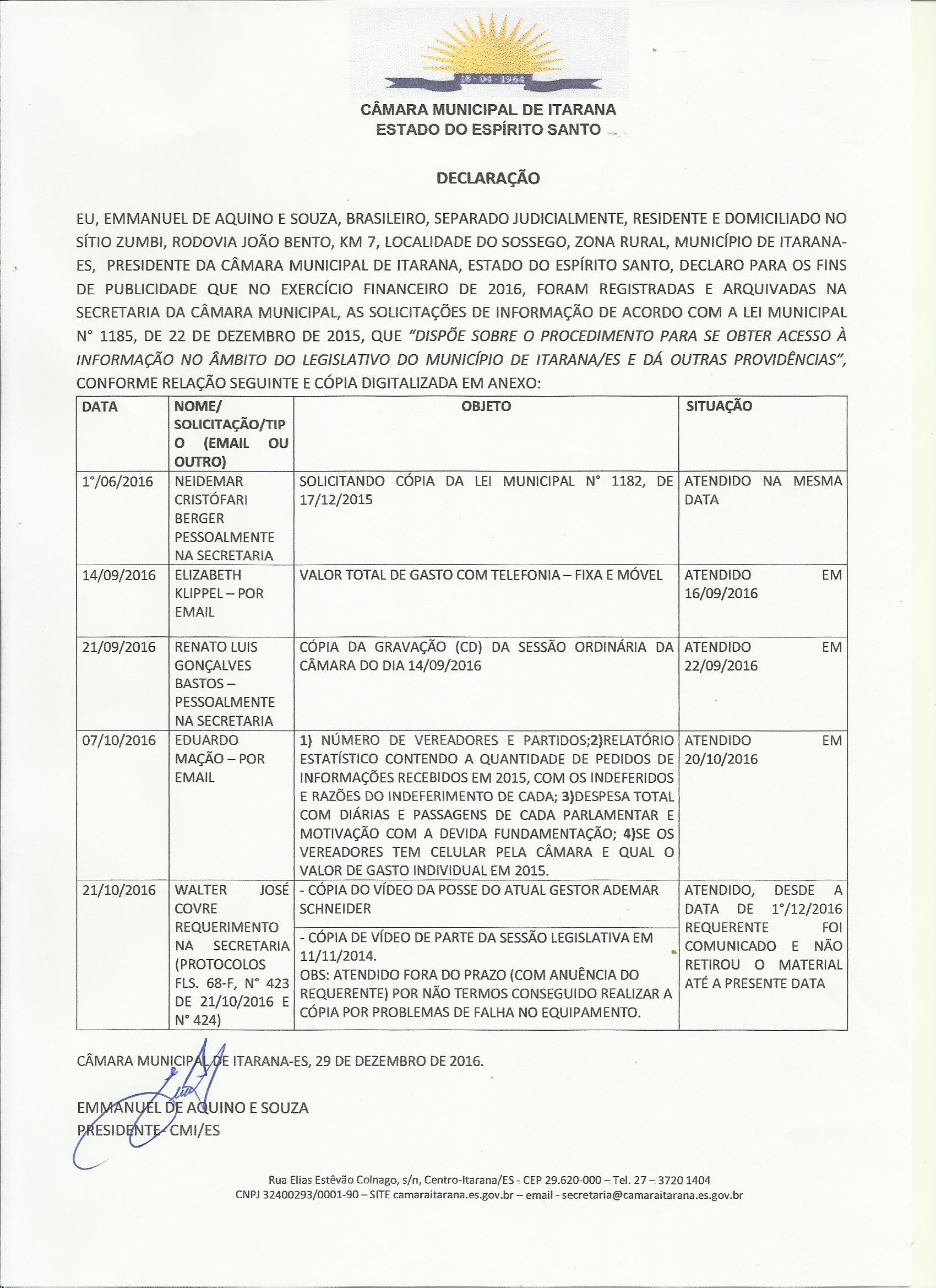 DECLARAÇÃO LEI DE ACESSO A INFORMAÇÃO